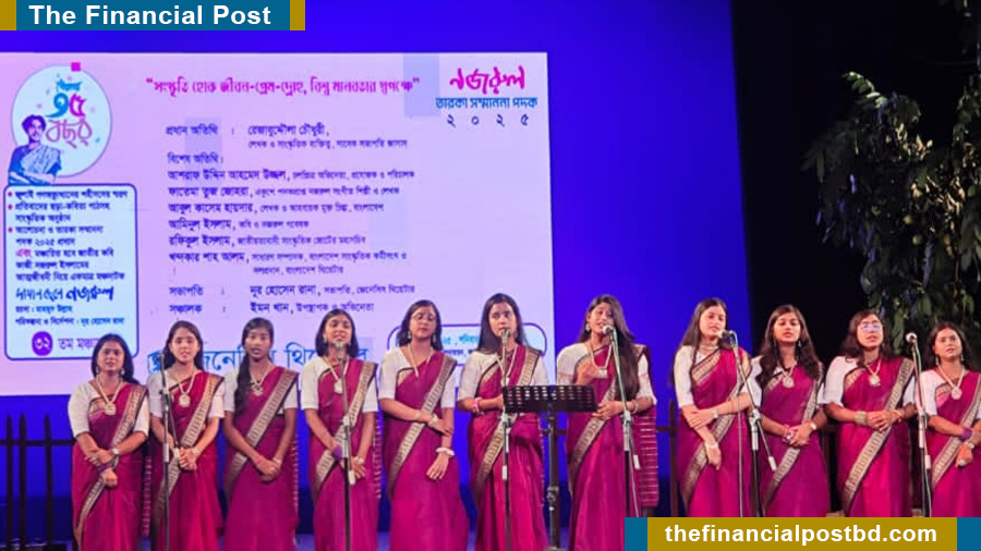 The play, written by Mahmud Ullah and directed by Nur Hossain Rana, was staged for the 32nd time, portraying the struggles and ideals of National Poet Kazi Nazrul Islam. Highlighted the struggles, ideals, and indomitable spirit of National Poet Kazi Nazrul Islam. Over the years, the production has become a signature presentation of the troupe, drawing wide appreciation for its unique portrayal of Nazrul’s life.