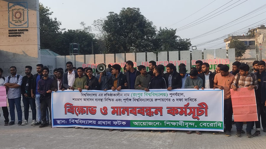 Rahmat Ali, Member Secretary of Anti-Discrimination Student Movement, Rangpur Metropolis, said that the name "Rangpur University" representing Rangpur region should be reinstated. In a survey, 85% of the students of the university voted in favor of the restoration of the name. Students have to renew their claim. We students do not accept discrimination, we want relief from housing crisis. Along with this, according to the university ordinance, quick steps should be taken to open 44 departments under 8 faculties.