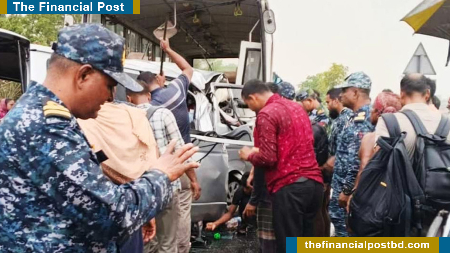 The accident occurred around 4:30 pm when the bus of Bangladesh Navy collided head-on with a microbus, leaving twelve people, including two children, dead on the spot, said Md Hasan, sub-inspector of Katakhali Highway Police camp.